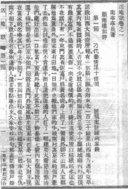 清光绪《绣像小说》连载本《活地狱》引首书影