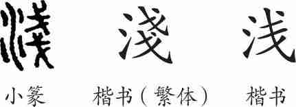“浅”是形声字。小篆从水,戔声。隶变后楷书写作“淺”。汉字简化后写作“浅”。