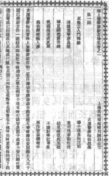 清代白话长篇狭邪小说。初集三十回,二集三十回,后集四十回。题“古沪警梦痴仙戏墨”。作者孙家振(1862—1937),字玉声,别署海上漱石生、江南烟雨客等,上海人。成书于清光绪三十二年(1906)。