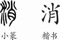 “消”是形声兼会意字。小篆从水,肖声,肖兼表变小之意。隶变后楷书写作“消”。