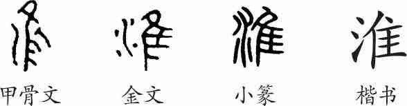 “淮”是形声字。甲骨文从水,隹声。金文复杂化。小篆整齐化。隶变后楷书写作“淮”。