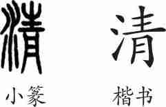 “清”是形声兼会意字。小篆从水,青声,青兼表青色之意。隶变后楷书写作“清”。