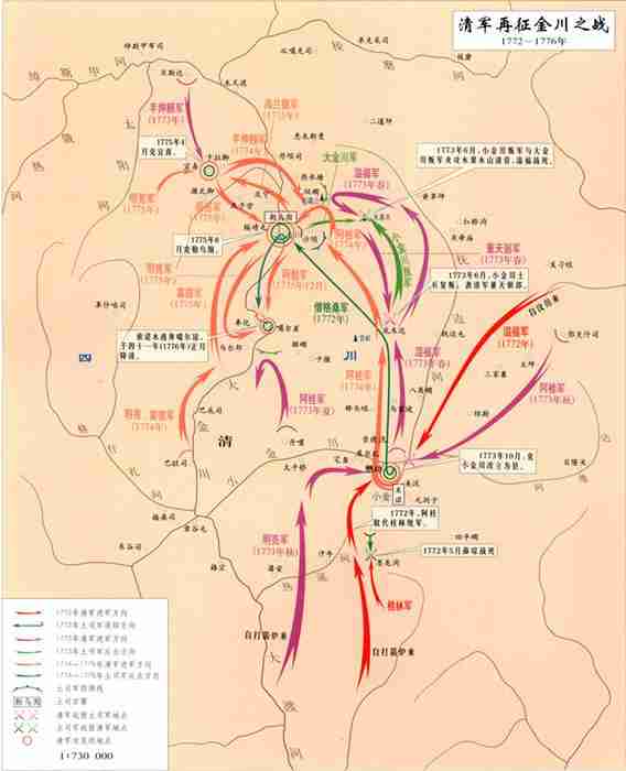 清乾隆三十七年(1772年)九月至四十一年(1776年)正月,清军再次征讨大小金川土司的战争。