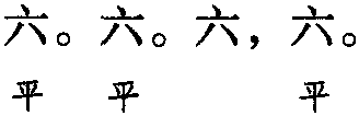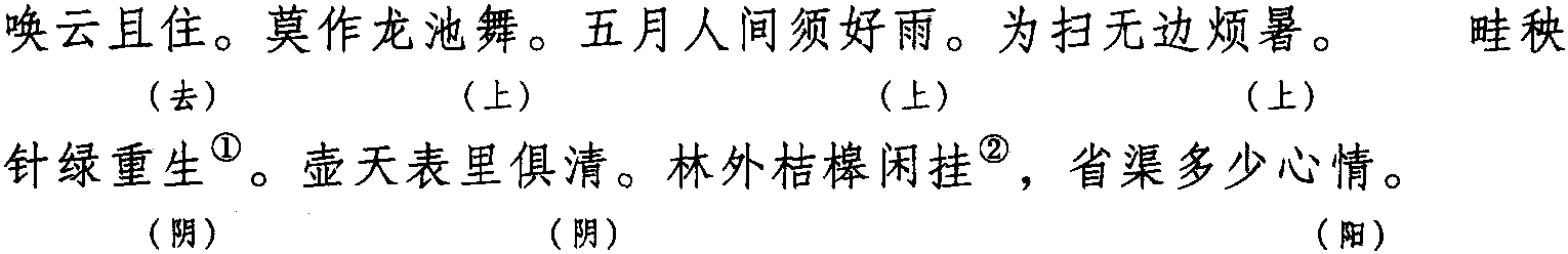 注:一、本词例押姑部“姑”韵; 东部“声” 韵。其中,“雨” 与“舞” 在古韵中同韵,而 “舞” 在现代韵中属 “姑” 韵,故 “雨” 亦属“姑” 韵。
