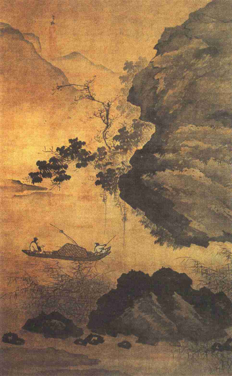 对蒋嵩的画品,历来褒贬不一。《无声诗史》称其:“善画山水,虽尺幅中直是寸山生雾,勺水兴波,浡浡然云蒸龙变,烟雾触目。岂金陵江山环叠,嵩世居其间,既钟其秀,复醇饮其丘壑之雅,落笔时遂臻化境,非三松之似山水,而山水之似三松也。”而《明画录》则认为:“行笔粗莽,多越矩度……徒呈狂态,目为邪学。”观此图可知上述两种说法,各持一端,都失之偏颇。平心而论,蒋嵩的山水,作为一个时代的产物,还是有他自己的特点的。