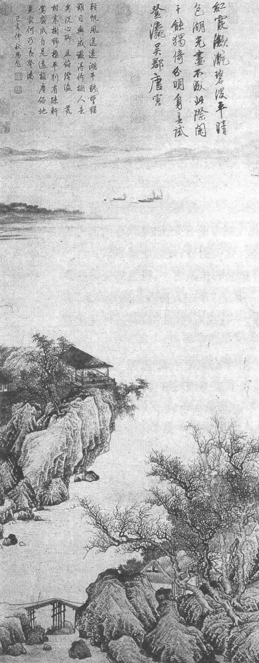 唐寅的《湖山一览图》表现了江南秀丽明净的湖光山色,其自题诗云: