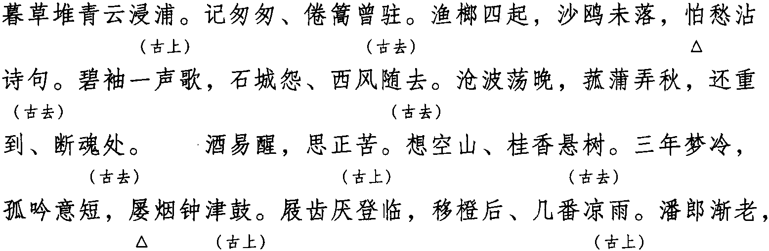 注: 本词例押古上声“语” “麌” 韵,古去声“遇” 韵。因 “语” “麌” “遇”在现代韵中属“居”韵,故全调可押衣部“居”韵。