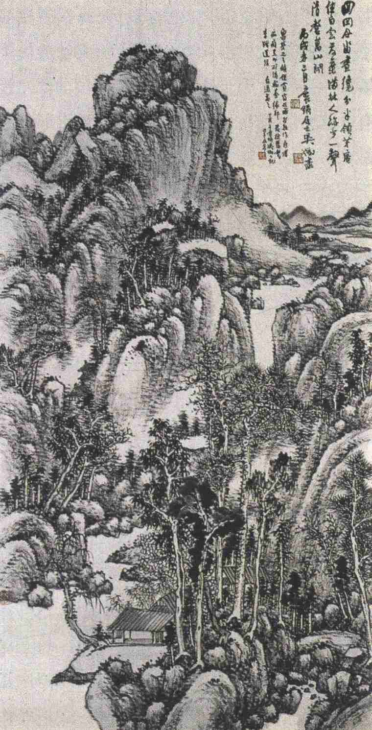 吴徵,工山水,初从家学,三十岁后力追古法,宗法清初“四王”,晚年倾力于王原祁,识者谓其沉雄苍润,兼而有之。亦作花卉、佛像。