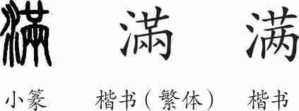 “满”是会意兼形声字。小篆从水,从,会水盈溢出之意,兼表声。隶变后楷书写作“滿”。汉字简化后写作“满”。