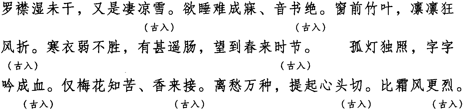 注:本词例押古入声“屑”“叶”韵。因“屑” “叶”在现代韵中属“些”韵,故全调可押些部“些”韵。