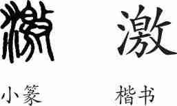 “激”是形声字。小篆从水,敫声。隶变后楷书写作“激”。