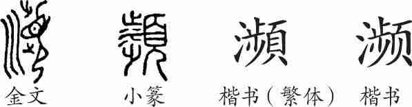 “濒”是会意字。金文右为大眼睛的人,左为河,上下有两个“止”(脚),会人走近水边要渡水之意。小篆承接金文。隶变后楷书写作“瀕”。汉字简化后写作“濒”。