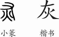 “灰”是会意字。小篆从火,从又(手),会火已经熄灭,可以用手去拿之意。隶变后楷书写作“灰”。