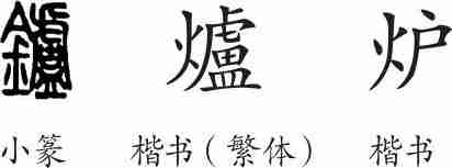 “炉”是会意兼形声字。小篆从火从盧(器皿)会意,盧兼表声。隶变后楷书写作“爐”。汉字简化后写作“炉”。