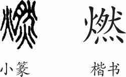 “燃”是后起字,为会意兼形声字。楷书写作“燃”,从火从然会意,然兼表声。