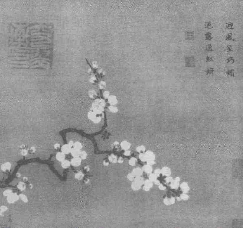 唐吴融《杏花》诗云:“春物竞相妒,杏花应最娇。红轻欲愁杀,粉薄似啼销。”在早春时节,眼前时而有杏花随风飘落,它们如雪飘,如霞飞,如旋律,轻盈美好,好像在诉说着别致的风情。因此,词的开篇就直奔主题,把三种花进行了比较:从颜色上看,粉红色的杏花要比梅花深,而较随后盛开的桃花浅。言外之意是说杏花色泽浓淡适中,最易品赏。它们就像素丝手帕拂拭过的色泽鲜艳的二八佳人脸庞一样,柔嫩娇美,吹弹可破。此句拟人,隐喻了所思念的女子拥有娇好的容貌之意,也为下句借花写恋情作了铺垫。接下来进一步对其色泽进行描写。“蜡融紫萼”,它们像白色的蜡与紫色的花朵融合晕染一般,深浅有致,风情万种。一朵朵杏花如羞颜,如魅眼,如梦幻,尤其在朦胧的烟霭之中,静如处子,在轻拂的风中,婉约可人。李商隐《村西杏花》诗中有“肌细分红脉,香浓破紫苞”之句,确实传神写照。它们有的含蕊待放,如娇羞处子;有的落落开放,如大家闺秀,一个个都令人艳羡不已、赏玩不厌。