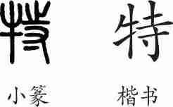 “特”是形声字。小篆从牛,寺声。隶变后楷书写作“特”。