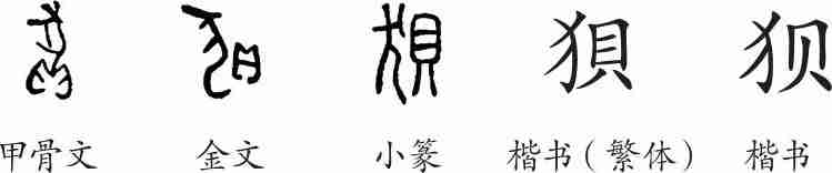 “狈”是形声字。甲骨文上面是一只头朝上的狈,尾巴的下端是个“貝”,表声。金文变为左右结构。隶变后楷书写作“狽”。汉字简化后写作“狈”。