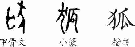《说文·犬部》:“狐,妖兽也。鬼所乘之。有三徳:其色中和,小前大后,死则丘首。从犬,瓜声。”(狐,妖异的野兽。是鬼所凭借的东西。它有三种德行:它的毛色是中和的黄色;前面的鼻尖小,后面的尾巴大;临死的时候对着出生的山丘摆正自己的脑袋。从犬,瓜声。)