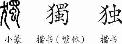 “独”是形声字。小篆从犬,蜀声。隶变后楷书写作“獨”。汉字简化后写作“独”。