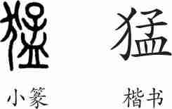 “猛”是形声字。小篆从犬,孟声。隶变后楷书写作“猛”。