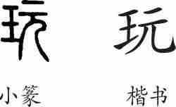 “玩”是形声字。小篆从玉,元声,表示把玩观赏美玉。隶变后楷书写作“玩”;又作“貦”,从貝。如今规范化,以“玩”为正体。