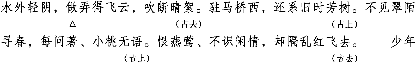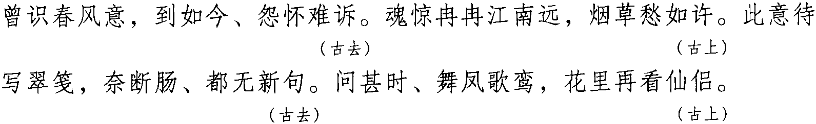 注: 本词例押古上声“语” “麌” 韵,古去声“御” “遇” 韵。因 “语” “麌”“御” “遇” 在现代韵中属 “居” 韵,故全调可押衣部“居” 韵。