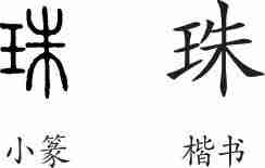 “珠”是形声字。小篆从玉,朱声。隶变后楷书写作“珠”。
