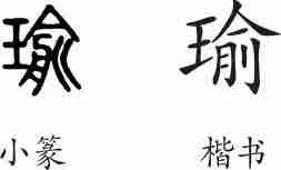 | 诗文 | 《瑜》字义,《瑜》字的字形演变,小篆隶书楷书写法《瑜》 |