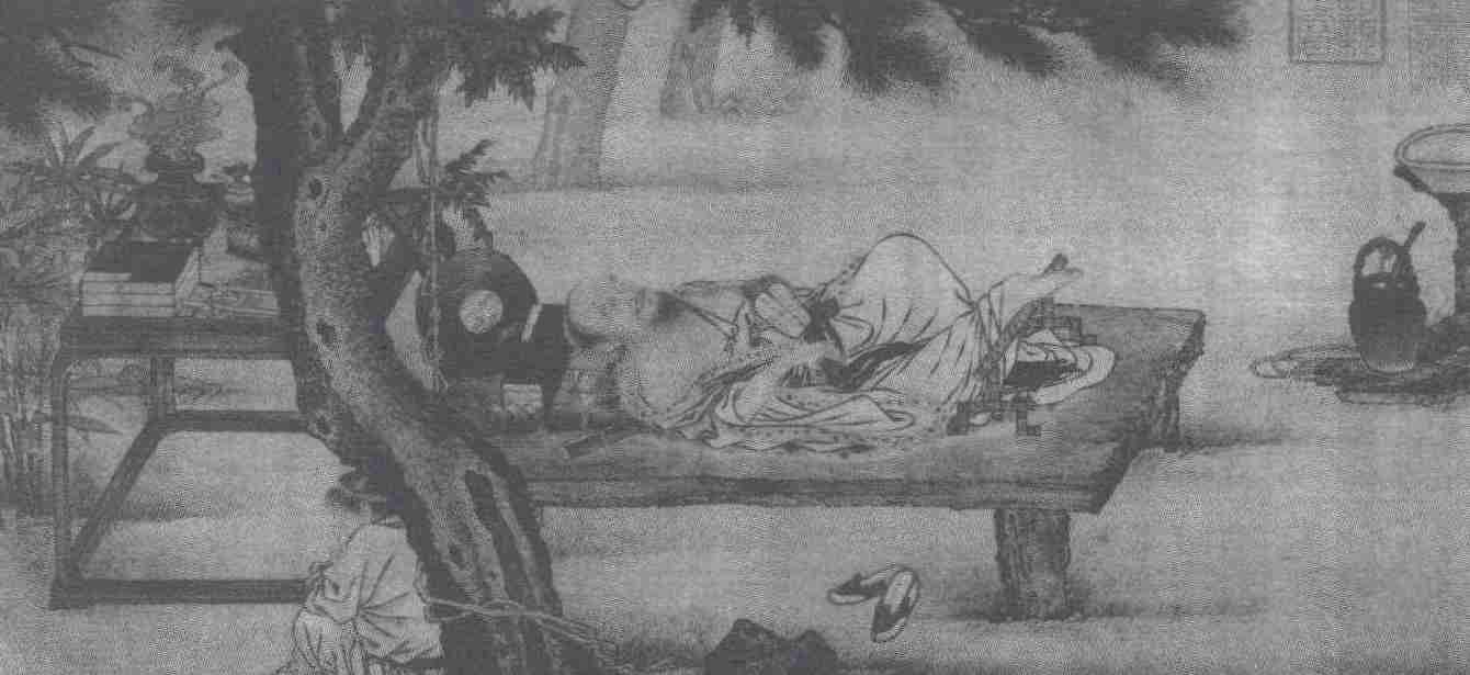 初秋的黄昏,苏轼在碧纱帐里一觉醒来,枕边微凉的秋风也吹不尽浓浓的睡意,于是继续躺在凉席之上,听外面公堂一片寂静,他知道这意味着今晚不用上堂处理公事了。这是一个清闲的黄昏! “一枕清风”是苏轼比较喜欢用的一个词组和意象,诗里多次用到(见本词注释②),它把晚风吹拂下那种清爽而又舒畅的困意表达得淋漓尽致。“卧听”二字表现出苏轼不愿起床的慵懒和悠闲,也说明他早就预料到今天“无一事”的状况了。这里实是反用古人之意,白居易《城上》诗写道:“城上冬冬鼓,朝衙复晚衙。”又《舒员外游香山寺数日不归兼辱尺书大夸胜事时正值坐衙虑囚之际走笔题长句以赠之》写道:“白头老尹府中坐,早衙才退暮衙催。”这些诗都是以“晚衙”来叹息公务繁忙,而苏轼却道“卧听”“无一事”,一种超脱的感觉就上来了。于是他徐徐起身,半躺半靠着看起了床头的书卷。这里一个“尽”字,再次把这种悠闲无止境放大、拉长。