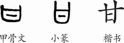 《说文·甘部》:“甘,美也。从口含一;一,道也。凡甘之属皆从甘。”(甘,美味。由“口”含“一”会意;一,表示味道。大凡甘的部属都从甘。)