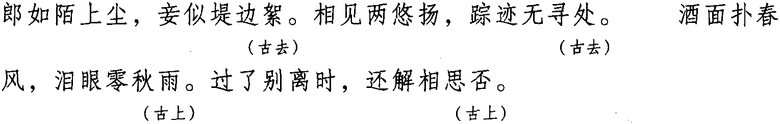 注: 本词例押古上声“纸” “麌” 韵,古去声“御” 韵。因 “纸” “麌” “御”在现代韵中属 “居” 韵,故全调可押衣部“居” 韵。