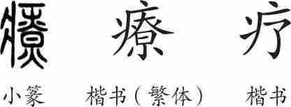 “疗”是形声字。小篆从疒(表示与疾病有关),尞声。隶变后楷书写作“療”。汉字简化后写作“疗”。