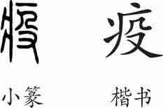 “疫”是会意兼形声字。小篆从疒(表示与疾病有关),役省声,役兼表流行之意。隶变后楷书写作“疫”。