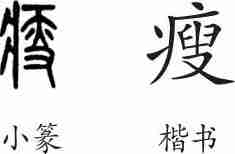“瘦”是形声字。小篆从疒(表示与疾病有关),叜声。隶变后楷书写作“瘦”。