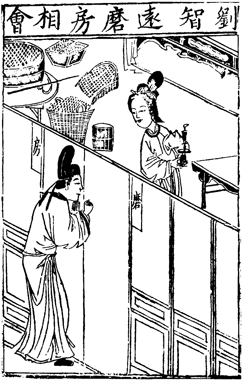 【前腔】 (生)娘行听咨启,我把真情诉与伊。对面娘儿不识,那日井边相逢,打猎一衙内寻兔的,你道是谁?名咬脐,是你孩儿。