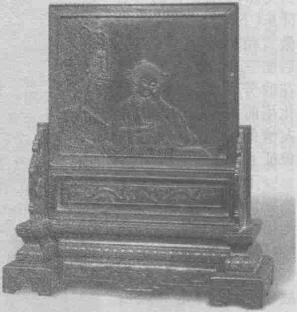 紫檀雕闺中仕女砚屏 【清】