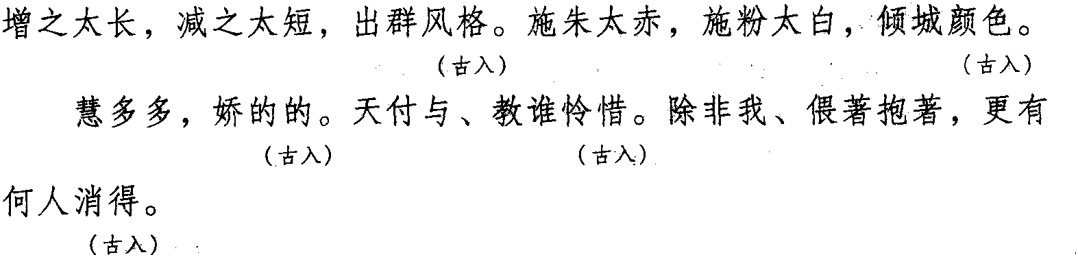 注:本词例押古入声“陌” “锡” “职” 韵。因 “锡” “职” 在现代韵中属“衣”韵,“陌” 与“碧” 在古韵中同韵,而“碧”在现代韵中属“衣”韵,故全调可押衣部“衣”韵。