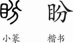 “盼”是会意兼形声字。小篆从目,从分,表示眼睛黑白分明,分兼表声。隶变后楷书写作“盼”。