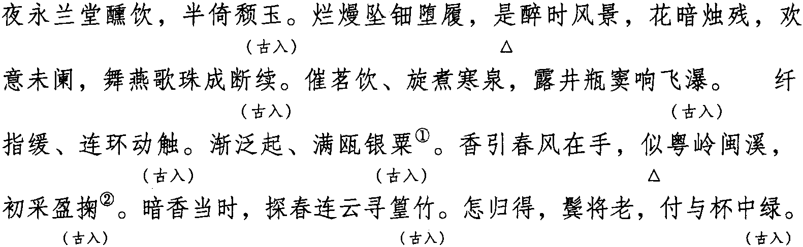 注:一、本词例押古入声“屋” “沃”韵。因“屋” “沃” 在古韵中与“木”“束” 同韵,而“木”“束”在现代韵中属“姑”韵,故全调可押姑部“姑” 韵。