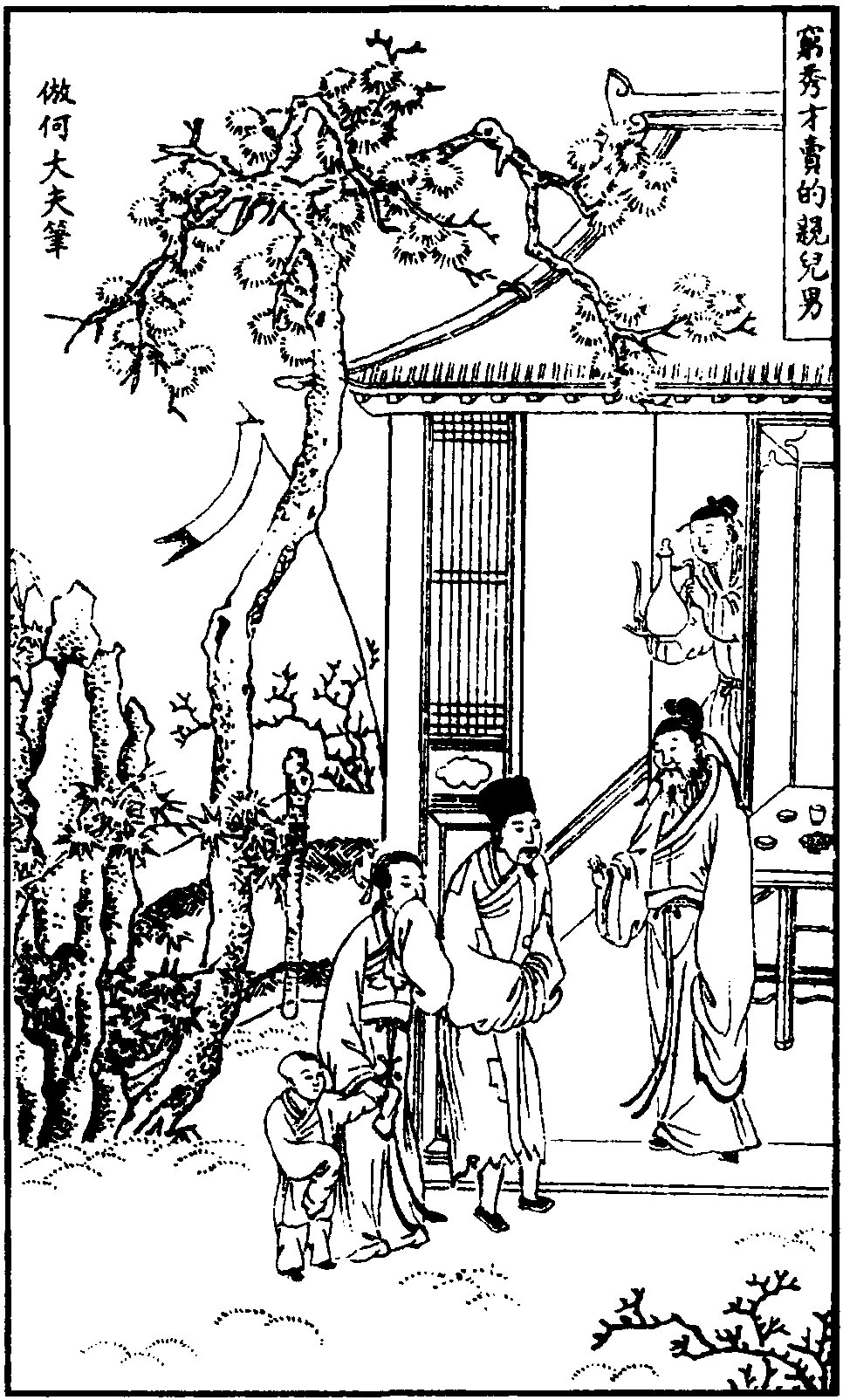 【倘秀才】 曲后是一大段宾白。当陈德甫提醒还未付卖主恩养钱时,这个贾仁,贫穷时在神灵前反复祈祷: “上圣可怜见,但与我些小衣禄食禄,我贾仁也会斋僧布施,盖寺建塔,修桥补路,惜孤念寡,敬老怜贫,我可也会舍的。” 骤然大富之后,竟是另外一种嘴脸。先是在口授陈德甫卖儿文书时就设下了圈套,一是不言明谁付谁恩养钱多少,二是写明如若反悔,罚宝钞一千贯与不反悔之人。陈德甫要求他付与周荣祖恩养钱,贾仁便胡搅蛮缠: “甚么恩养钱? 随他与我些便罢。” 理由是“如今要在我家吃饭,我不问他要恩养钱,他倒问我要恩养钱。” 还要倒打一耙,说周荣祖反悔,“罚一千贯宝钞来与我”。陈德甫再三说合才极不情愿地开库取出一贯钱,并且申明: “一贯钱上有许多宝字,你休看的轻了。你便不打紧,我便似挑我一条筋哩。” 周荣祖妻张氏气愤地说: “怎生与我一贯钞? 便买个泥娃娃儿,也买不的。” 【滚绣球】 前一叠是剧烈翻腾的心理活动,申诉穷人家的孩子也是母亲十月怀胎,三年哺乳辛苦养成,而贾仁只付一贯钱,简直与乘人之危、恃强抢夺无异。“我虽是穷秀才,他觑人忒小哉。那些个公平买卖,量这一贯钞值甚钱财?” 后一叠是对贾仁不公平做法的义正词严的抗议。他看清了贾仁是以饵相钓,巧取豪夺,想起了 “留得青山在,不怕没柴烧” 的俗语,决定即使沿街叫卖诗文、行乞讨吃,也不卖儿子了。