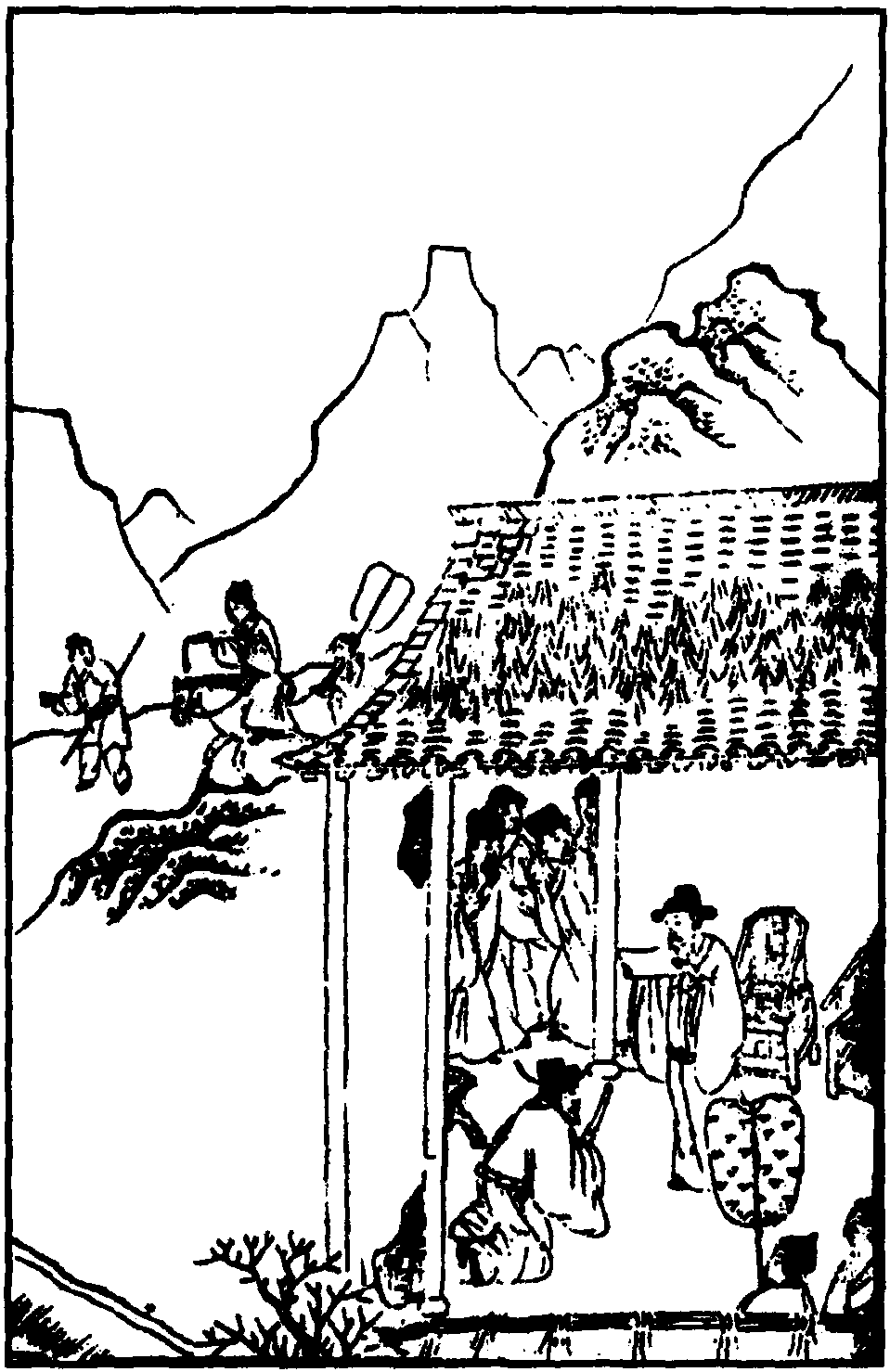 圣旨追寻到桃花村,是主人公杜衍不曾料到的,所以才说 “十行字谁承望”。( “十行字” 即十字诏,典出东汉光武帝以手迹赐方国皆 “一札十行”。) 既然不曾料到,自然也不曾备下参拜的朝服,这就为临时穿戴起傀儡的衣冠张本。这样一来,哪里像退了休的丞相,俨然成了农村的 “木伴歌”。“伴歌” 者,多写作 “伴哥”,犹如芒郎、王留,都是村民习用的名字。与其说是自嘲像个呆头呆脑的农夫,不如说就是穿戴傀儡衣衫的傀儡人。或请示皇帝是否关心农桑,或使者传达圣人“保治之道,何者为先” 的咨询,就都成了皇帝和傀儡人的对话,所以才有“生疏了朝章,捏不出擎天浴日的谎” 的回答。擎天,指擎天之柱,喻担当重任; 浴日,指浴日之能,喻卓越功勋。假如说任丞相时确有这样的本事,如今询之傀儡,岂不形同问路于盲吗?其讽刺的寓意不说自明。所以 《盛明杂剧》 黄嘉惠于此曲有眉批曰: “此番演傀儡,是真是幻,悆 (喜) 幻悆真,妙不容言。” 就是从这一方面取意的。