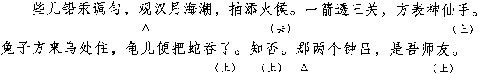 注:一、本词例押收部“收”韵。其中,“笑” “了”与“廖”在现代韵中同“高”韵,而“廖”在古韵中属“宥”韵,故“笑”“了”亦属“宥”韵,“宥” 在现代韵中属收韵。