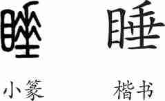 “睡”是会意兼形声字。小篆从目从垂会意,“垂”兼表声。隶变后楷书写作“睡”。