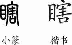 “瞎”是后起字,为形声字。楷书写作“瞎”,从目,害声。