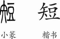 “短”是会意字。小篆从矢,从豆;古人度量长短常以矢为尺度,高脚食器“豆”又短于矢,以此会不长之意。隶变后楷书写作“短”。