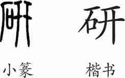 “研”是形声字。小篆从石,幵声。隶变后楷书写作“研”,声符幵变为开。