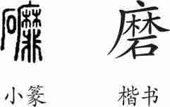 “磨”是形声兼会意字。小篆从石,从靡(表细密),会磨制石器之意,靡兼表声。隶变后楷书写作“磨”。
