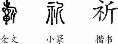 《说文·示部》:“祈,求福也。从示,斤声。”(祈,向神明求福。从示,斤声。)