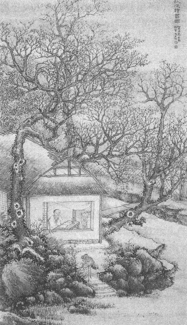 这幅《秋夜读书图》比较明显地反映出蔡嘉严谨写实的画风。